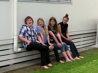 Our third physical challenge had us sitting on imaginary chairs outside. In teams of two we had to lean against the classroom wall and keep our legs at a 90 degree angle to imitate sitting on a chair. Teams were disqualified for not following the instructions or receiving 3 warnings. Team members had to encourage each other because if one member dropped out the other team member had to forfeit as well. By the end of the challenge there were only two teams that earned points - a tough and painful challenge!